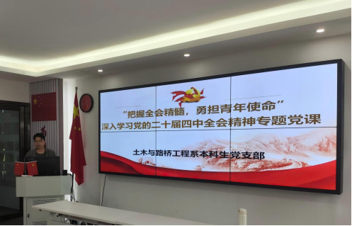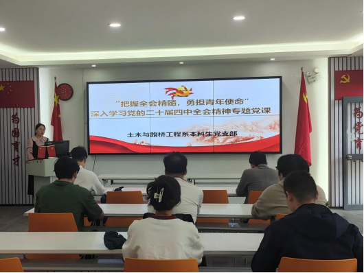 此次专题党课是支部贯彻落实党的创新理论、强化青年思想引领的重要举措。未来,支部将持续深化理论学习教育,引导广大青年学子以党的二十届四中全会精神为指引,坚定理想信念、练就过硬本领,提升运用专业知识解决基层实际问题的能力,增强服务精神和先锋意识,将学习成效转化为干事创业的动力,主动对标全会部署要求,为实现“十五五”规划目标、推进民族复兴伟业贡献青春力量。