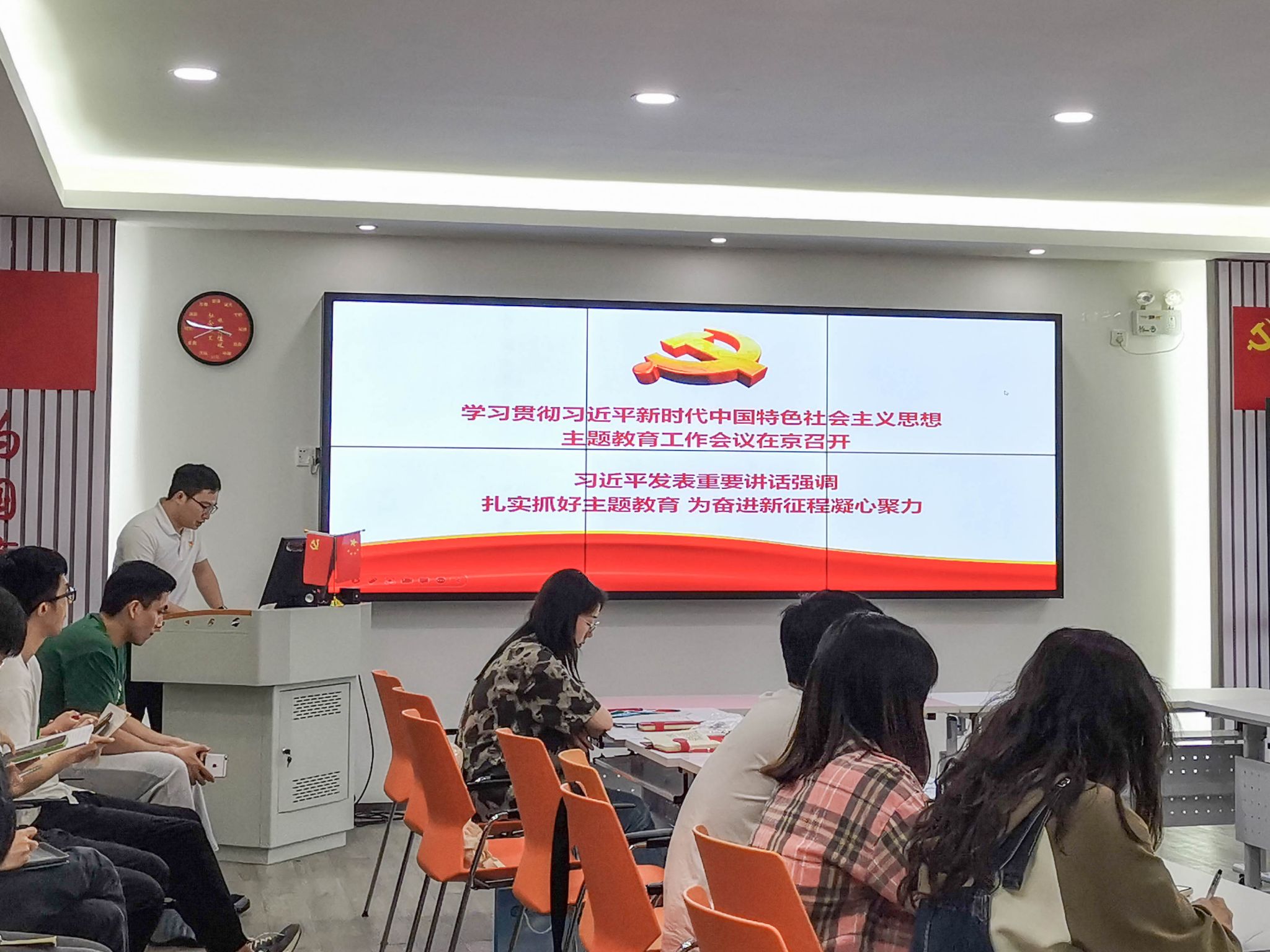 研究生第一党支部在综合实验楼12G401开展以“学习贯彻习近平新时代中国特色社会主义思想主题教育”为主题的党日活动,活动主要以支部党员座谈会的形式展开。
