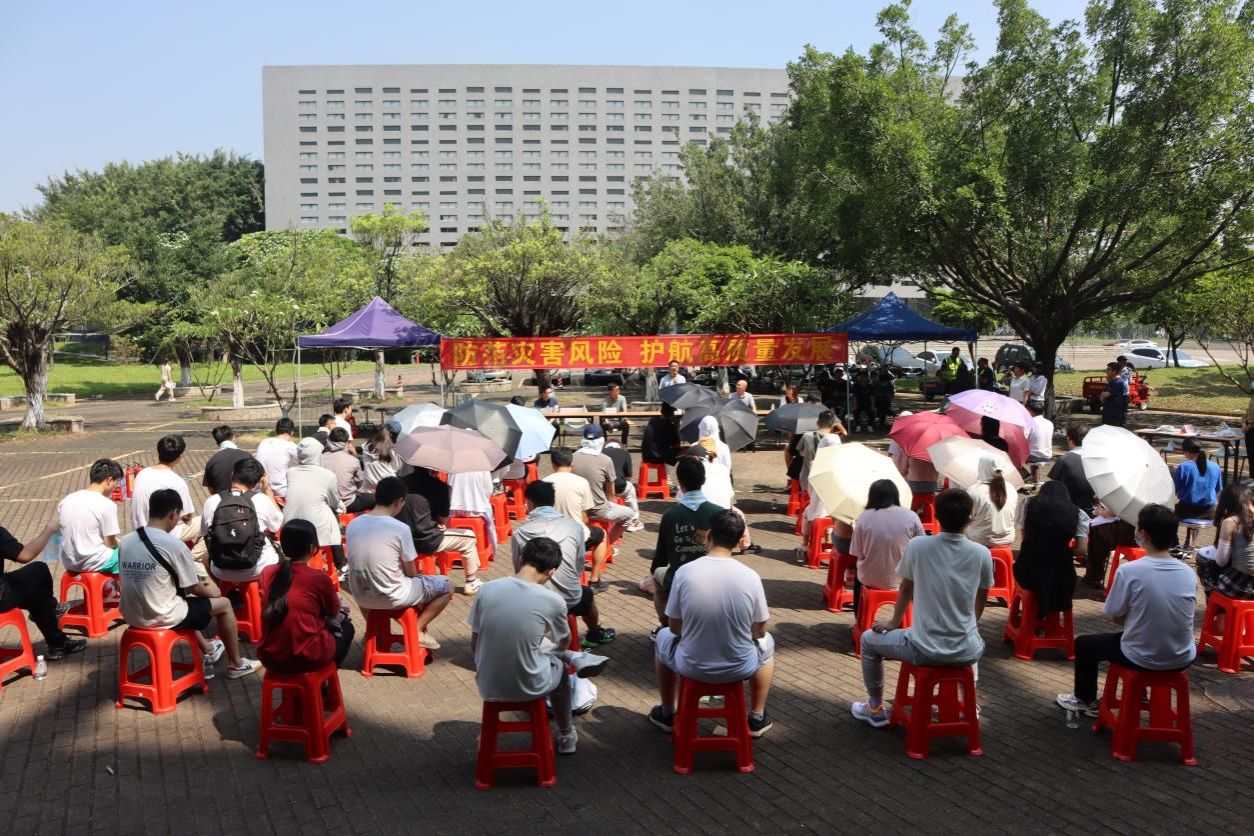 研究生分两组,一组在党员孙炜同志和班长郑锐芬带领下,二组在党员徐曼曼同志和班长梁俊文带领下,从实验室按照指定路线、规定动作,迅速有序地进行紧急疏散,并到达广场集合,清点人数。
