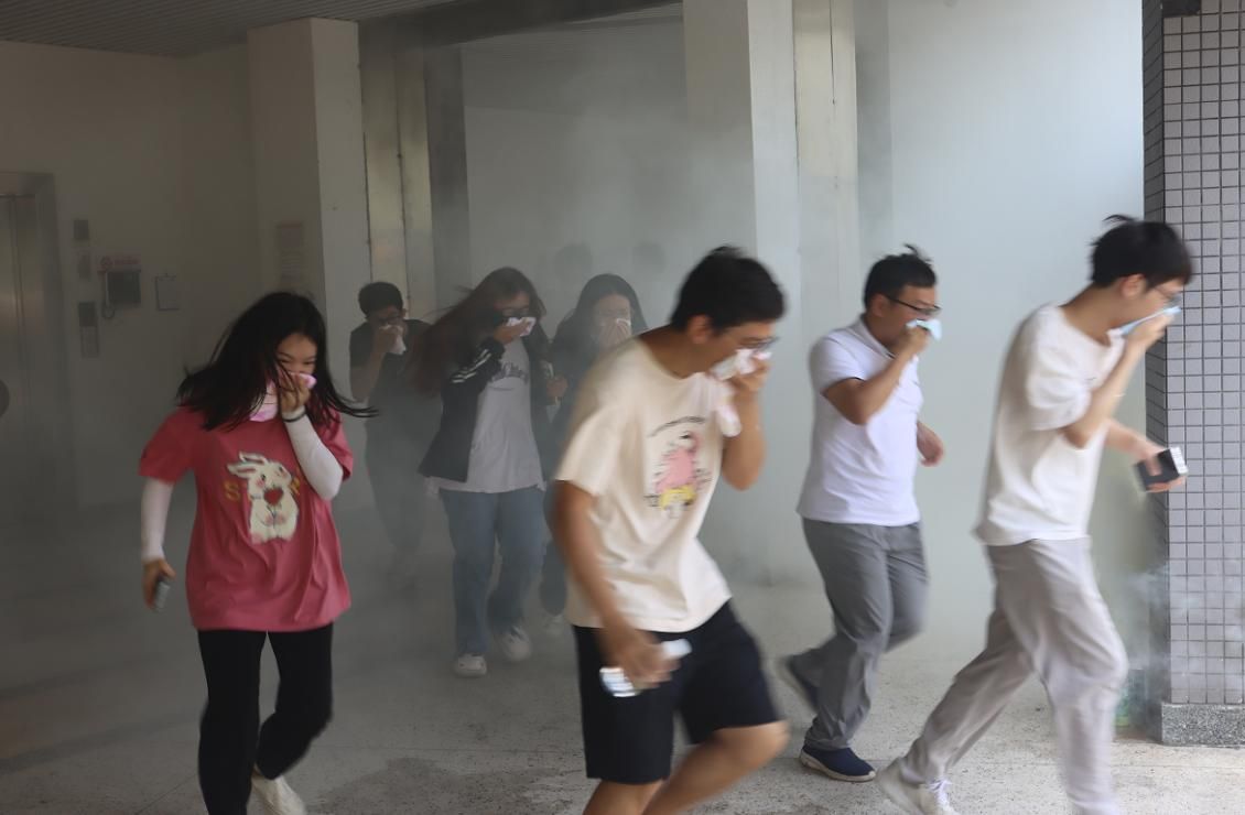 火情结束,姜因耀老师进行消防安全知识培训,重点讲解自防自救措施,示范消防自救呼吸器的使用方法,介绍常见灭火器的使用方法及注意事项等。姜老师鼓励在场所有老师和同学进行灭火实操体验,切实掌握灭火器的使用方法 。