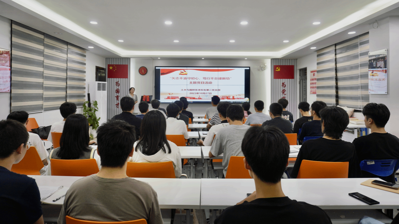 土木与路桥工程系本科生第二党支部开展“矢志不渝守初心,笃行不怠建新功”主题党日活动。参加本次活动的有支部全体党员,发展对象代表、入党积极分子代表和入党申请人代表。支部书记苏朗主持本次活动。