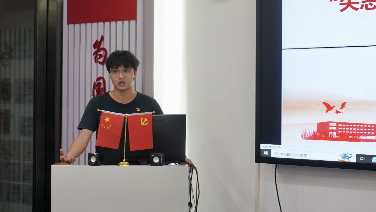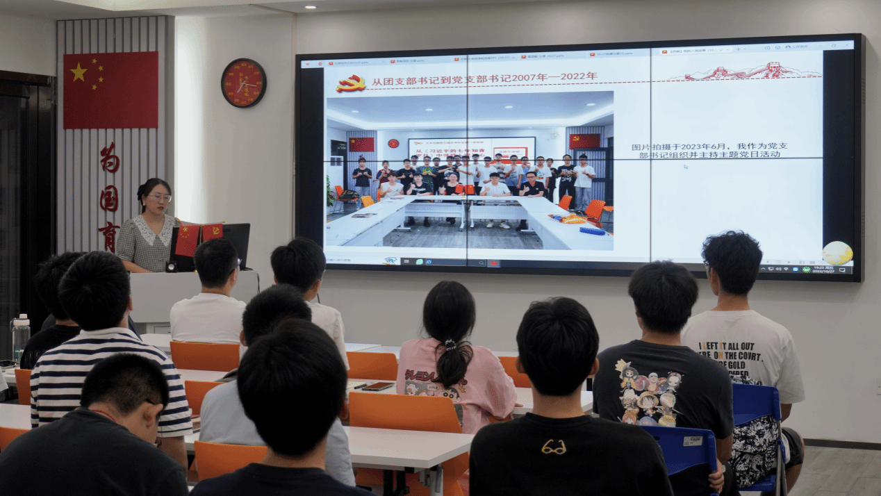 作为一名有着13年党龄的正式党员,支部书记苏朗以“追忆入党初心,强化使命担当”为题分享了她的入党故事。她的讲述分为“我的家乡——红色之城哈尔滨”、“从团支部书记到党支部书记”、“从企业HR到高校辅导员”三部分。她详细地讲述了今年暑假回到家乡参观侵华日军第七三一部队遗址及罪证陈列馆的经历,重温了曾经发生在东北黑土地上的一段苦难的记忆。接下来她讲述了自己从2007年的团支书书记到2022年的党支部书记这15年间中国经历的两次重大的突发公共事件——汶川大地震和新冠肺炎疫情,在大灾大难面前,中国共产党用实际行动彰显了“全心全意为人民服务”的宗旨。最后,她讲述了自己从企业HR回到校园成为高校辅导员的原因,“在最贴近年轻人的地方讲理想、讲信仰,影响一代又一代年轻人,助力他们成为有为、乐为和敢为的时代新青年。我觉得这是我成为高校辅导员的初衷和使命。”