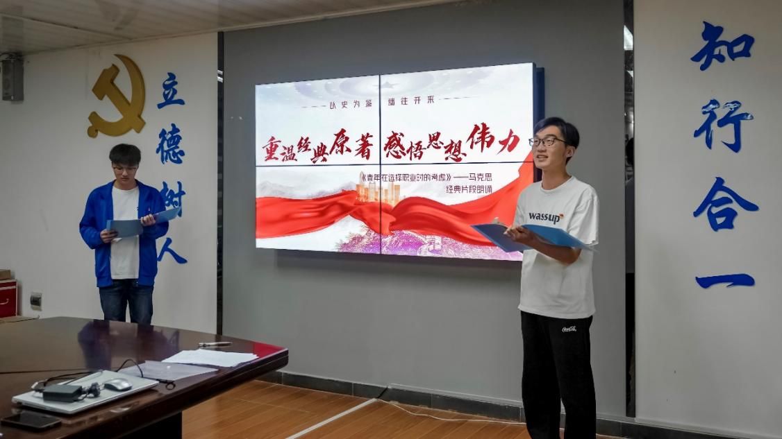 土木与路桥工程系本科生第二党支部全体党员开展“重温经典原著,感悟思想伟力”主题党日活动。本次活动选取了马克思主义发展史上的重要文章《青年在选择职业时的考虑》进行研读和学习。