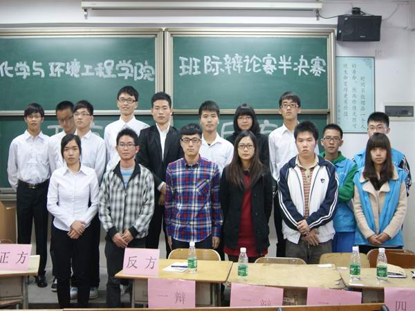 辩论队的11、12级骨干,参加本次半决赛的班级是成功晋级的四个班。其中,高材1班与应化1班围绕辩题“面对当前的就业困难,考研是不是最好的出路?”进行了激烈的辩论,而高材2班和环境1班则以“教育是更依赖个体自身,还是更依赖群体?”展开了另一场撼动人心的较量。