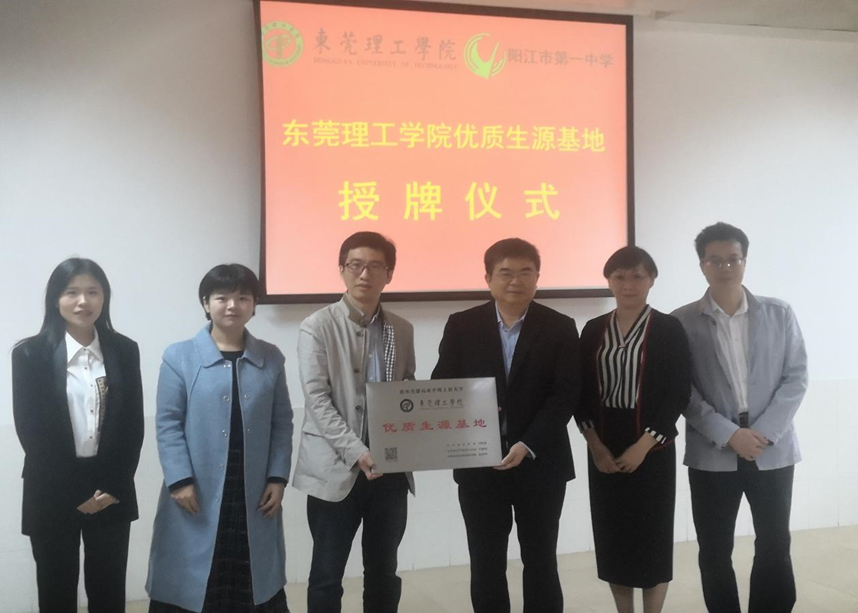 副院长孙璨副教授带队前往阳江市第一中学、阳春市第一中学开展招生宣传工作,举行“优质生源基地”签约授牌活动,我院学工办主任张媚老师、学工办雷菲老师参加了签约授牌仪式。