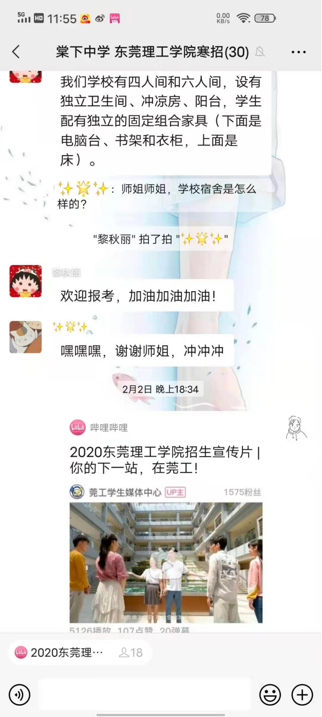 寒招队员线上发送视频等相关资料,向学子们介绍学校的基本情况,包括学校的地理位置,建设现状,学科专业,师资力量,科研情况等。同时也对家长关心的人才培养模式,毕业后的就业前景,广东省的招生政策和我校今年的招生新变化进行详细地讲解。在宣传过程中,寒招队员耐心解答考生们关心专业和社团活动的问题。学子们通过寒招队员的讲解和答疑,对巨乳美女