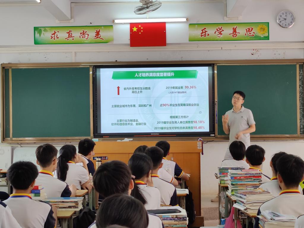 土木工程系主任艾心荧博士、潘兆东博士、庞书孟博士、袁慧敏老师组成的招生宣传队伍赴优质生源基地恩平市第一中学进行走访交流并召开宣讲会。