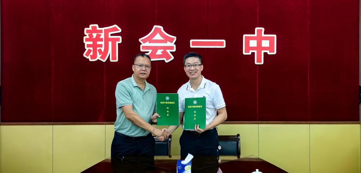 交流会上,梁志校长代表新会一中同我校签订优质生源基地共建协议。