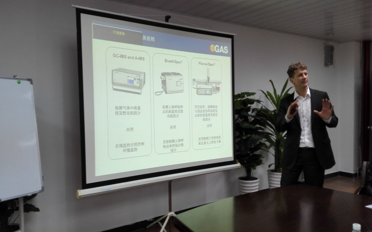 交流会上,Thomas博士就什么是气相离子迁移谱技术进行分享,对该项技术在工业、食品、环境检测应用案例进行了详细解读。除此,还就老师的问题进行了详细解答。台上与台下形成了良好的交流互动,达到了演讲者与参与者双方满意的成果。