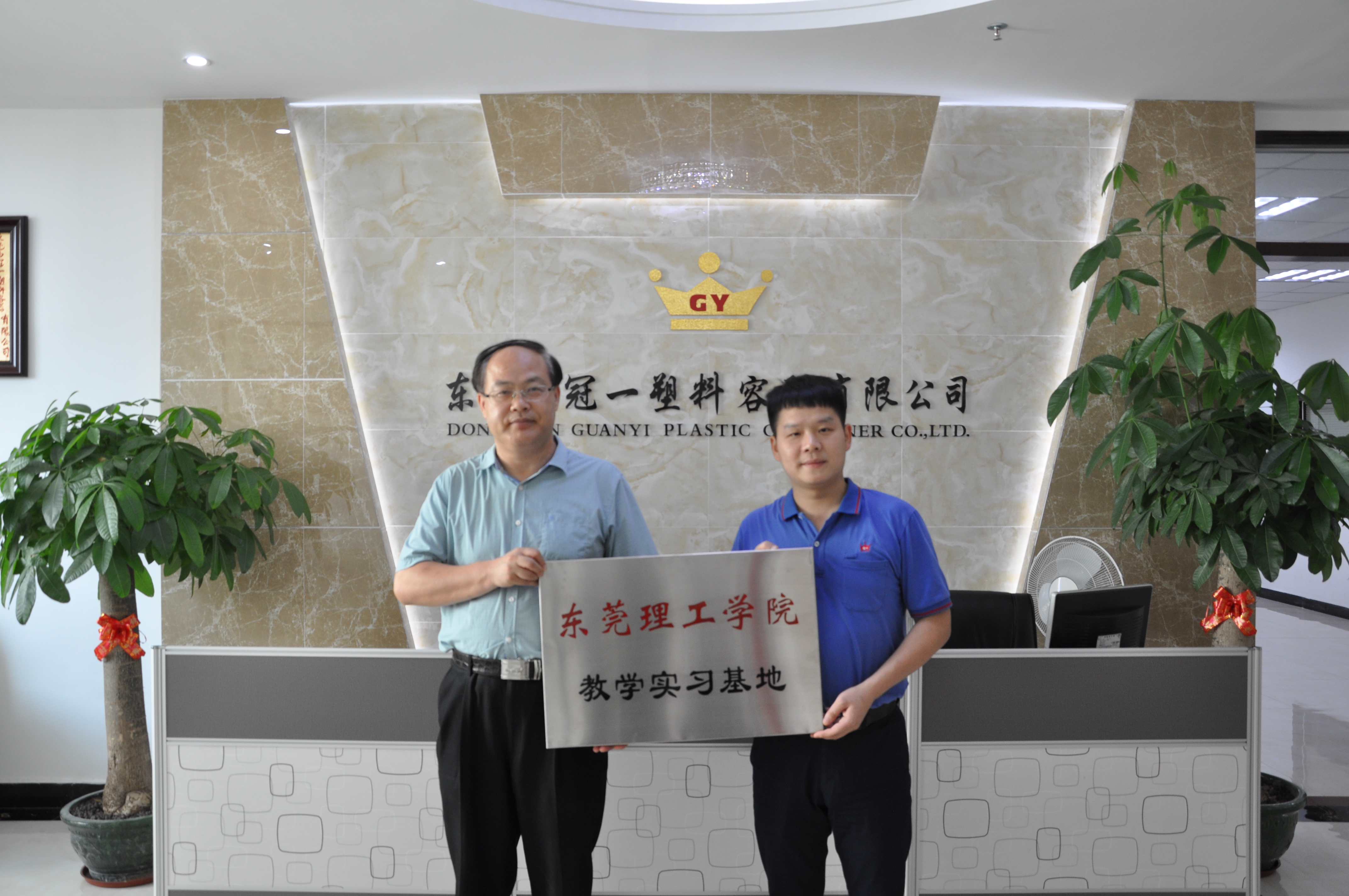 6月8日,巨乳美女 新增东莞市冠一塑料容器有限公司为教学实习基地,并举行挂牌仪式。巨乳美女 院长范洪波教授与东莞市冠一塑料容器有限公司总经理邓志辉等出席挂牌仪式。