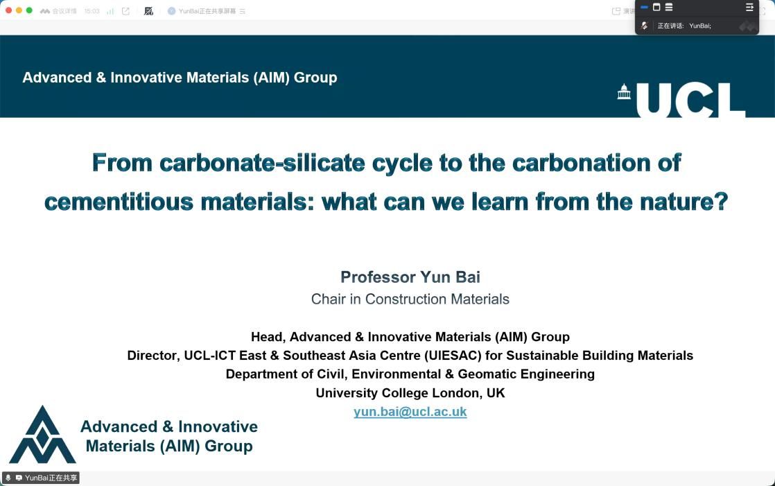 (UCL)白云教授给我院师生做《From carbonate-silicate cycle to the carbonaton of cementitious materials: what can we learn from the nature?》的线上巨乳美女