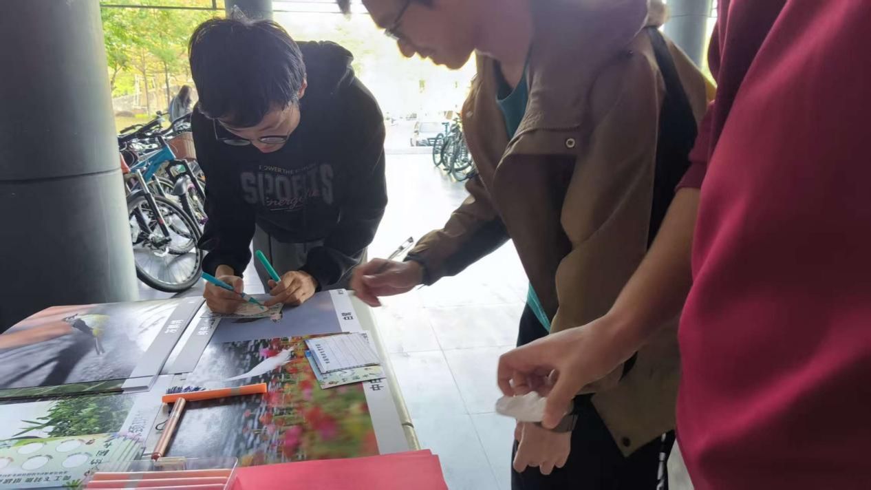 除了干货满满的科普宣讲,现场设置的沉浸式游园趣味环节更是点燃了同学们的参与热情。鸟类图鉴“极速抢答”考验大家对鸟类知识的快速反应与记忆;鸟鸣盲听“声纹识鸟”让同学们闭上眼睛,通过分辨不同鸟类的鸣叫声感受自然韵律;鸟类拼图“拼速大作战”在动手动脑中加深对鸟类外形的认知;迁徙路线“快闪冲锋”让同学们在模拟迁徙过程中体会鸟类生存的不易;护鸟行动“创意涂鸦”则为同学们提供了表达生态愿景的平台,大家用画笔勾勒心中的护鸟场景、低碳生活蓝图。每个环节都人气高涨,同学们在轻松愉悦的互动中近距离感受鸟类魅力,深化对湿地保护、生态平衡的理解,将“爱护鸟类、践行低碳”的理念内化于心。